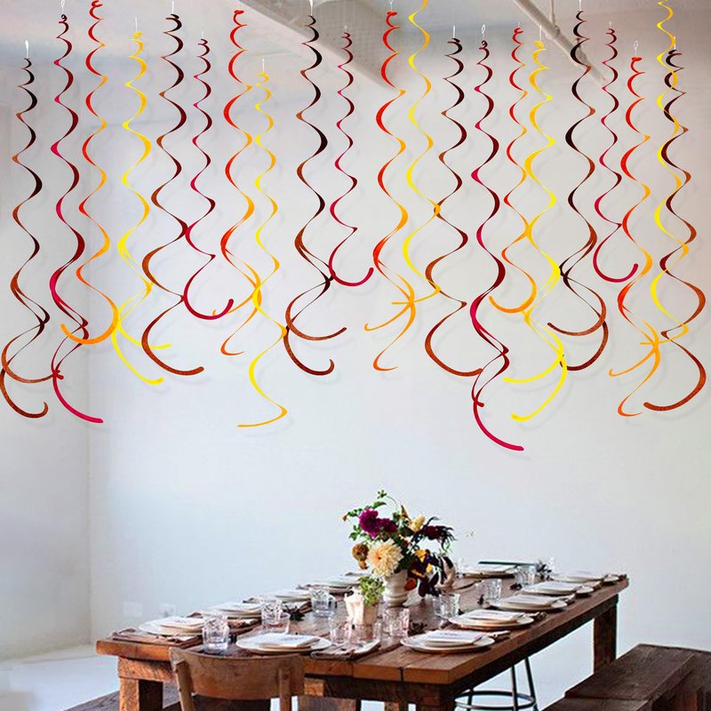 - 🟠PACKAGE CONTAINS - 36 packs of fall color swirl party streamer,Each swirl can extends to approximately about 2.62 feet long,Meeting daily general needs.Comes with 40 plastic hooks for hanging.