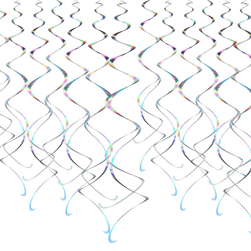 - What's Included: The package comes with 36 pcs iridescent hanging swirls measuring 22 inches long. The white party streamers are designed with double-swirls, suitable for hanging anywhere you want to add a sense of atmosphere.