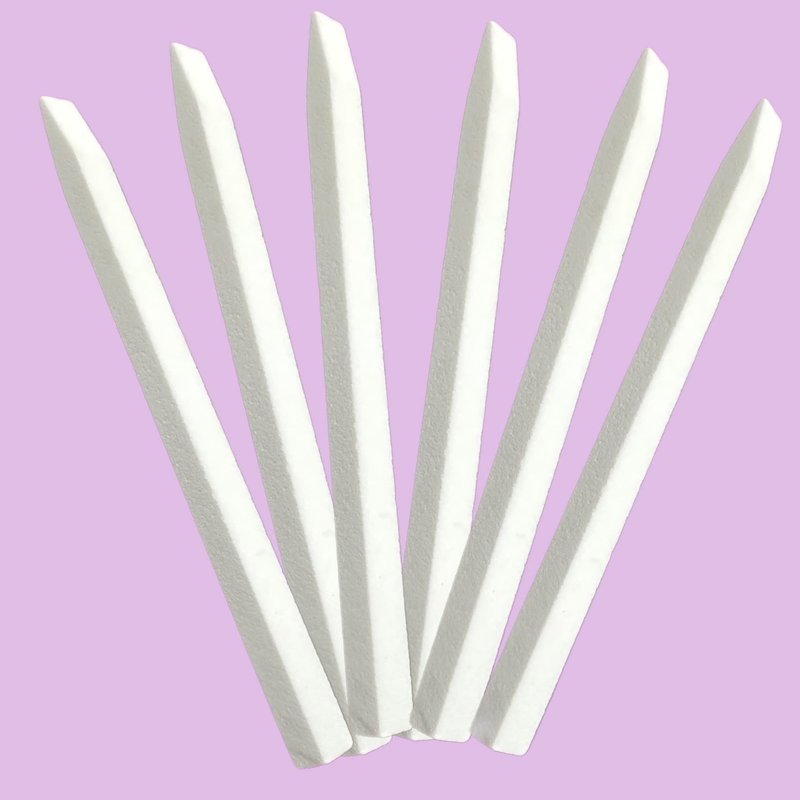 - V-shaped tip pumice sticks buff nail surface and file away and remove excess dry skin, cuticles and hangnails quickly and they are easy to hold and work with.