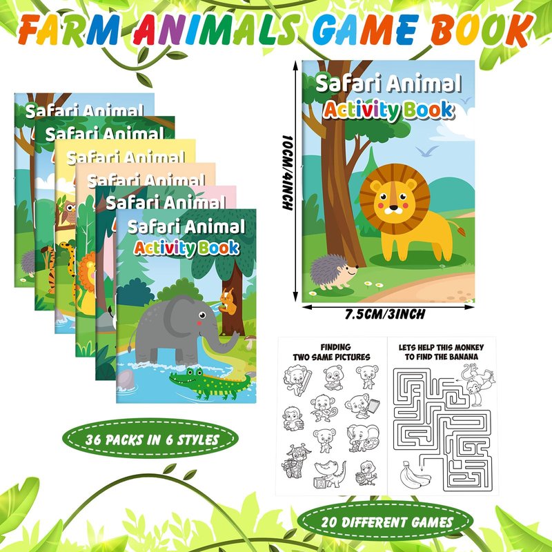 - What You'll Get: the package comes with 36 pieces of mini safari animals activity books in 6 different patterns, each book has 10 pages and there are 20 games in one book, enough to meet your kids' DIY needs, and can let them play the whole day, adorable pattern will attract their attention and make it fun to play