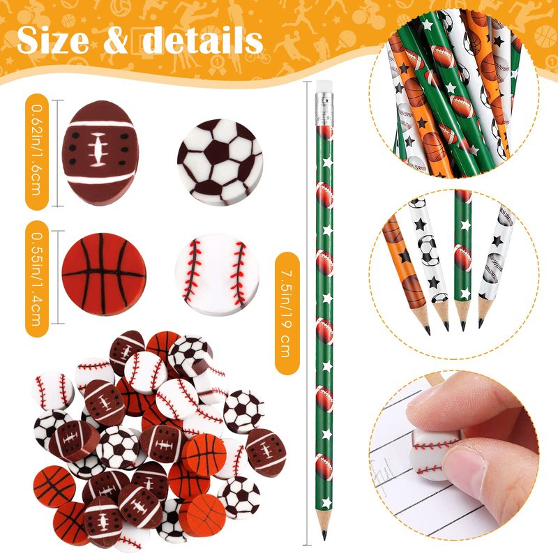 - Extensive Applications: these sports themed pencils and erasers are suitable for teachers and students, which can be applied as birthday gifts, class prizes, lucky draws, carnival rewards, or party favors to add a lively vibe