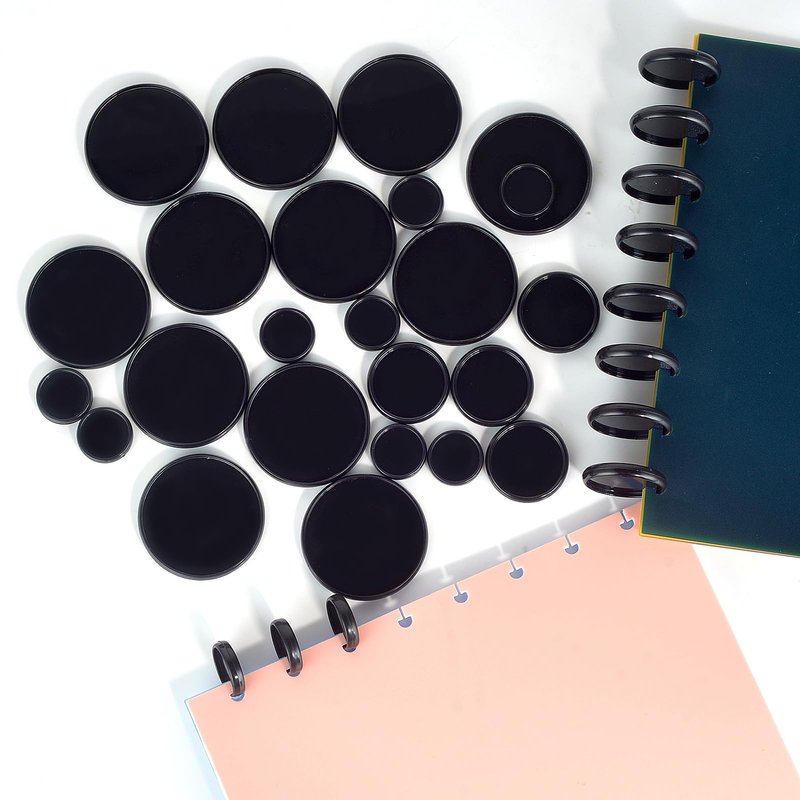 36 Pieces (2",1-3/8",1") Black Discbound Discs Plastic Binder Rings Expansion Discs Notebooks Planner Discs Binder Accessories Disc Binder System Book Binding Discs for Planner Scrapbooking (Black)