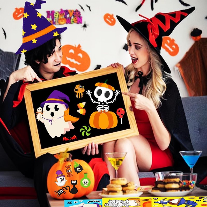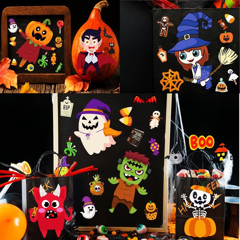 - 【DIY Your Own Halloween Stickers】Make a Halloween stickers for kids is a great way to inspire children's rich imagination and hands-on ability. What's more, this funny game will improve your kid's cognition of color and improve children's creativity, they can DIY their own stickers at Halloween party game.