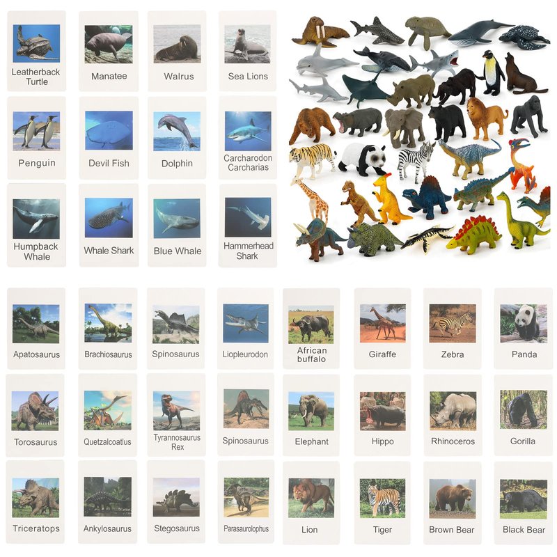 Make learning more fun! Let children love learning with realistic animal toy set designed for kids 3+ years old. It features various animal figures, contains 36 animals set and cards.