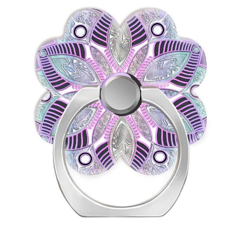 360 Degree Finger Stand Cell Phone Ring Holder Car Mount with Hook for Smartphone-Lavender Purple yin yang Lotus Flower Mandala