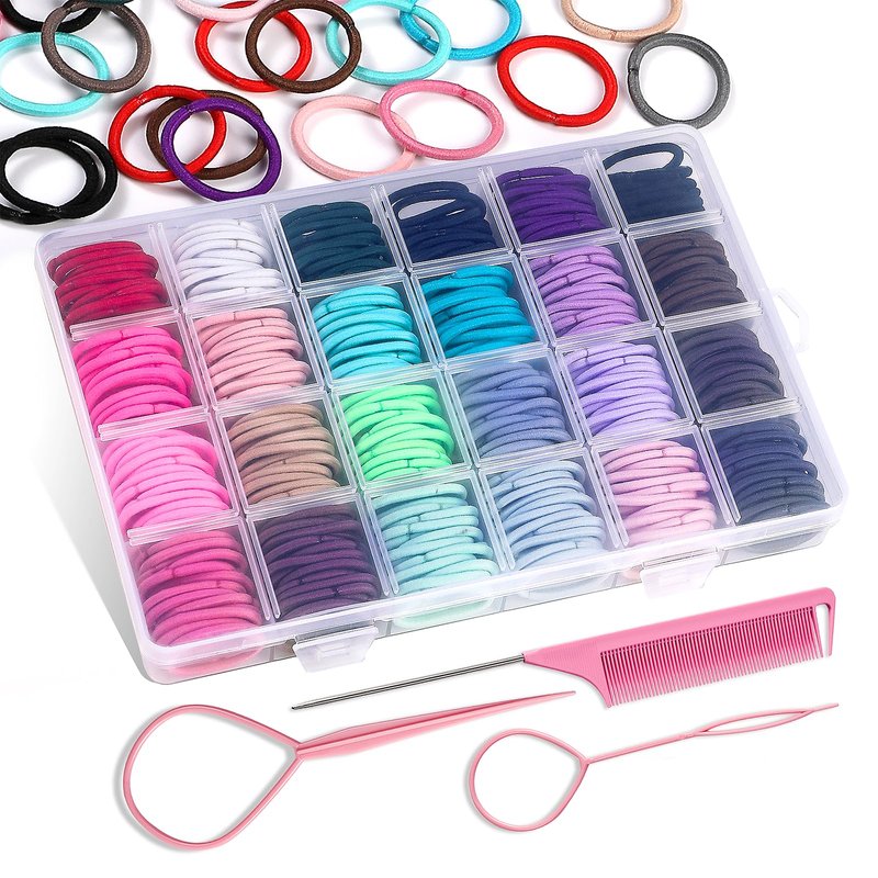 - 【Clear Organizer Box】Our small ponytail holders are perfectly stored in a clear storage box according to 24 different colors. Each color has its own compartment, which is very friendly to organizers. The box is 7.48*5.15*1.18in, which is sturdy and flexible.