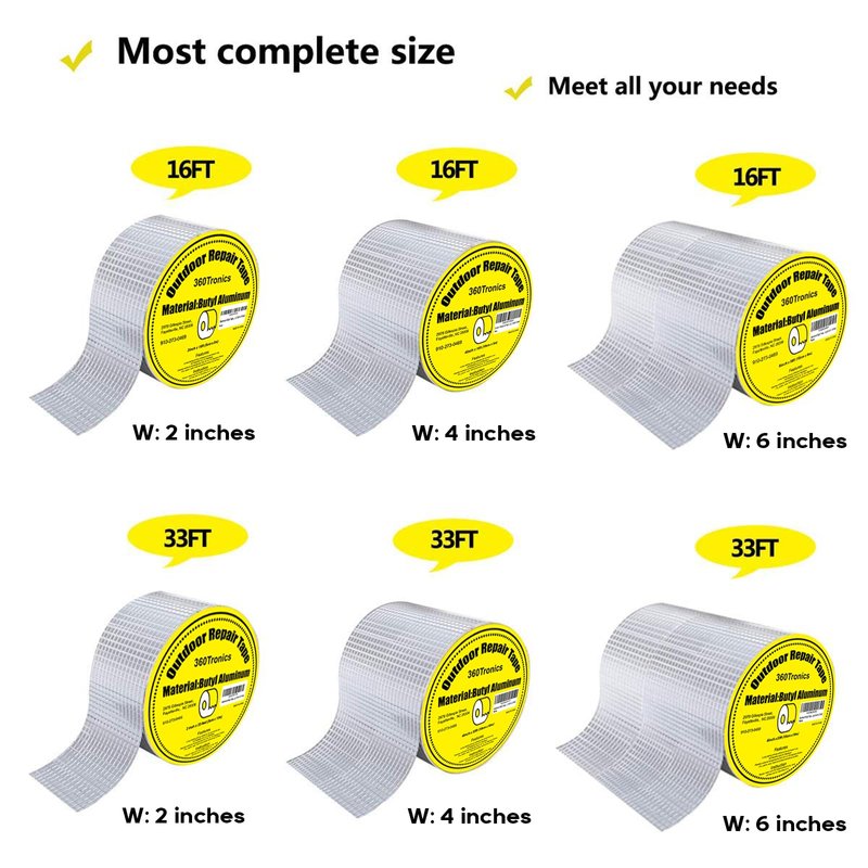 - ✔WATERTIGHT BUTYL TAPE SIZE & MATERIAL: Length:5.5 yards Width:2 inch. Aluminum foil backing, butyl rubber self-adhesive for strong sticky, a powerful solution for quick and temporary roof leak repairs in your home.