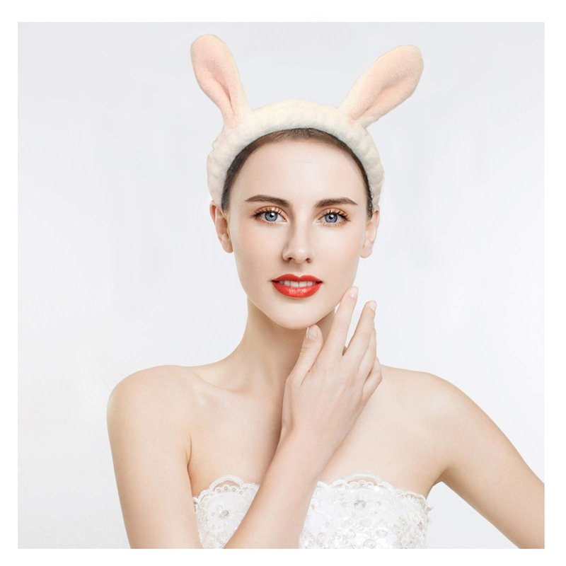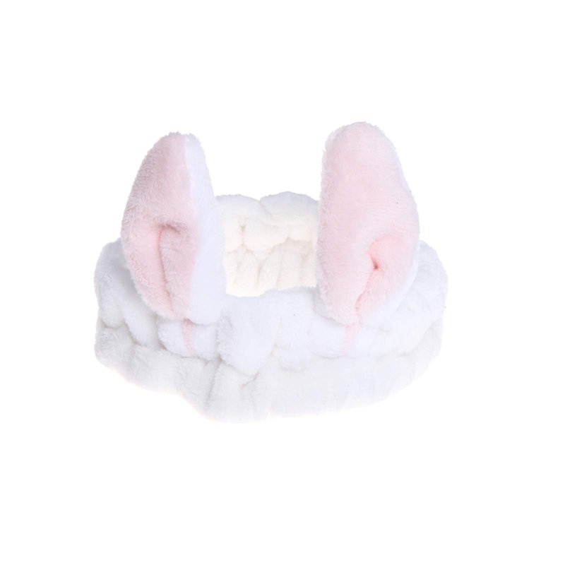 366DAYS Cute Bunny Ear Headband,Face Wash Makeup Spa Headbands,Soft Carol Fleece Hairlace Headband for Women (White)