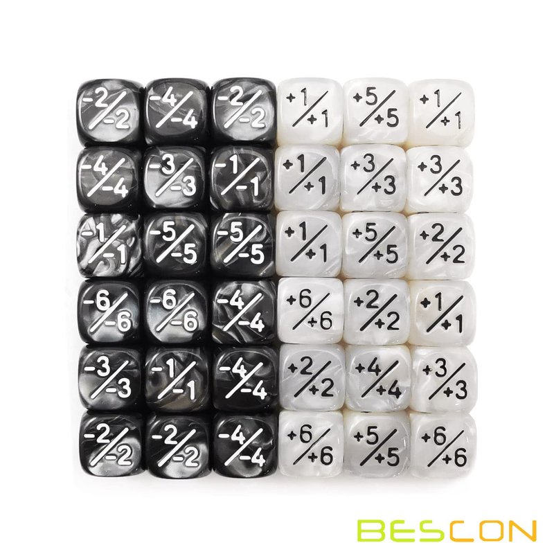 - Adequate Quantity: comes with 36 pieces of dice counters, including 18 pieces marble white positive dice counter and 18 pieces marble black negative dice counters, nice combination for satisfying your gaming using or replacing;