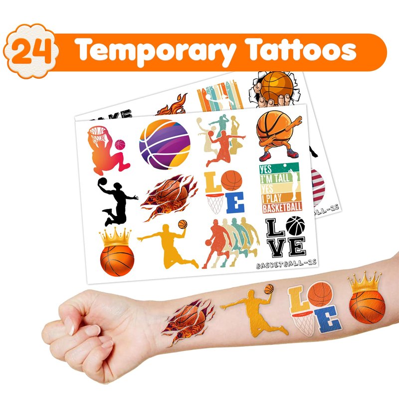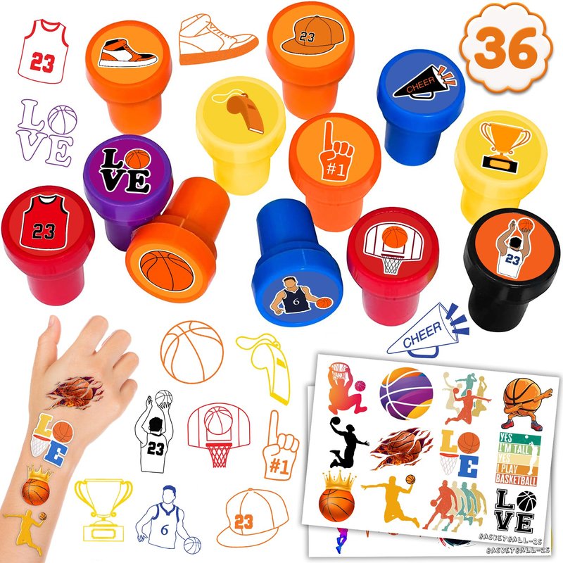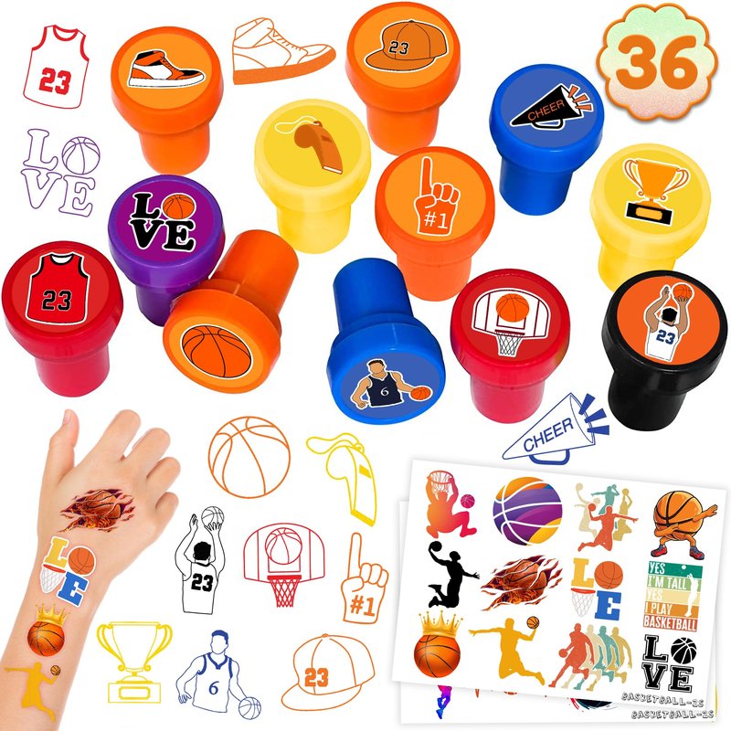 36PCS Basketball Party Favors 24 Tattoos Sticker 12 Stamp Set - Ideal Player, Team, Team, Shoot Themed Birthday Decor Supplies Goodie Bag, Classroom Gifts, Cute Rewards for Girls, Baby Shower Prizes