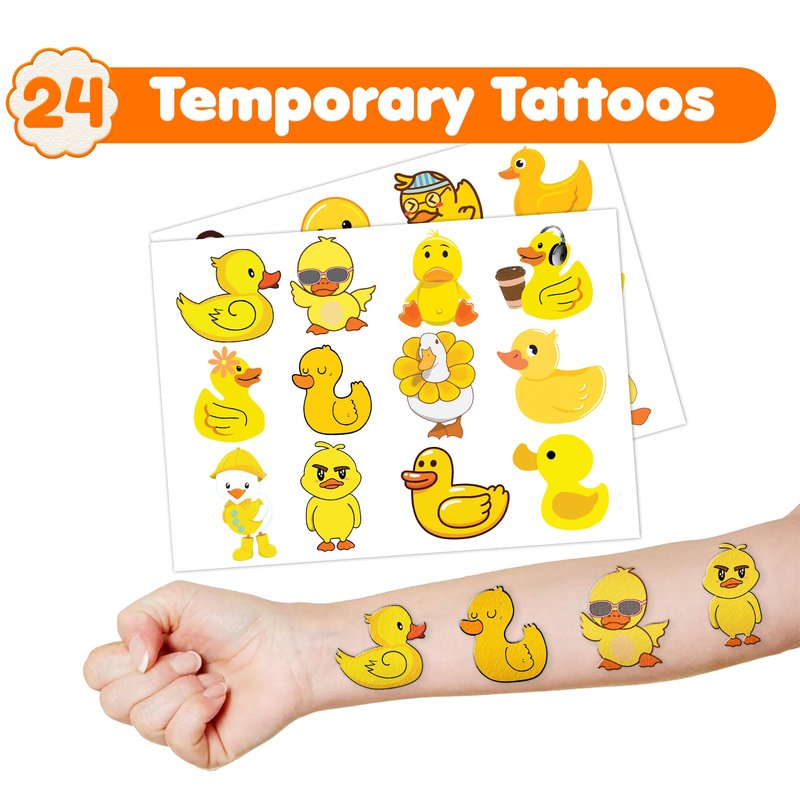 36PCS Duck Party Favors 24 Tattoos Sticker 12 Stamp Set - Ideal Rubber Duck Themed Birthday Decor Supplies Goodie Bag, Decorations Classroom Gifts, Cute Rewards for Girls, Baby Shower Prizes