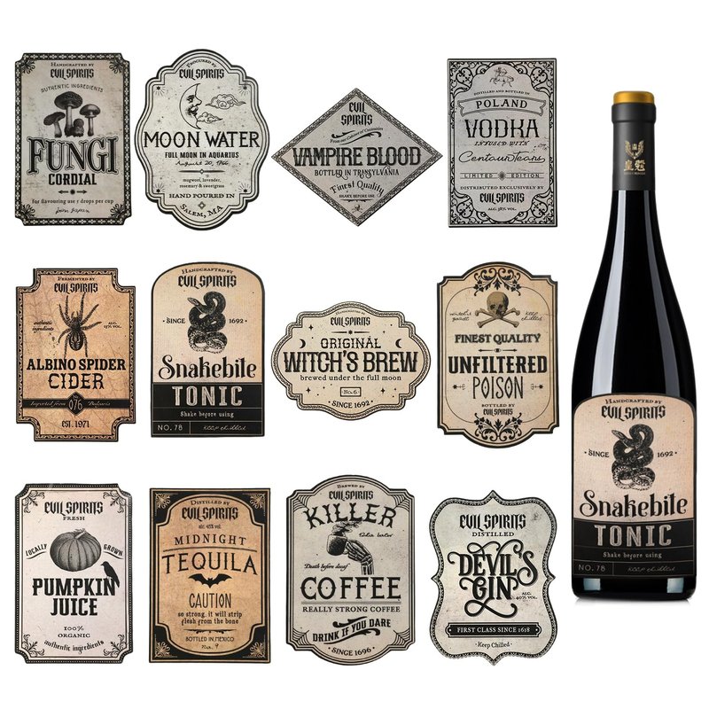 - Package Content: You will receive 36 sheets of wine bottle stickers, there are 12 styles, 3 sheets of each, 36 sheets in total, with a dark retro theme as a whole, which is very in line with the Halloween atmosphere.