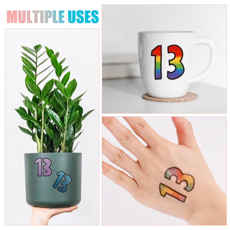 - Versatile: Our number 13 tattoos are not only suitable for sticking on skins, but also for decorating your phone cases, scrapbooks, stationary cases, gift boxes, etc.