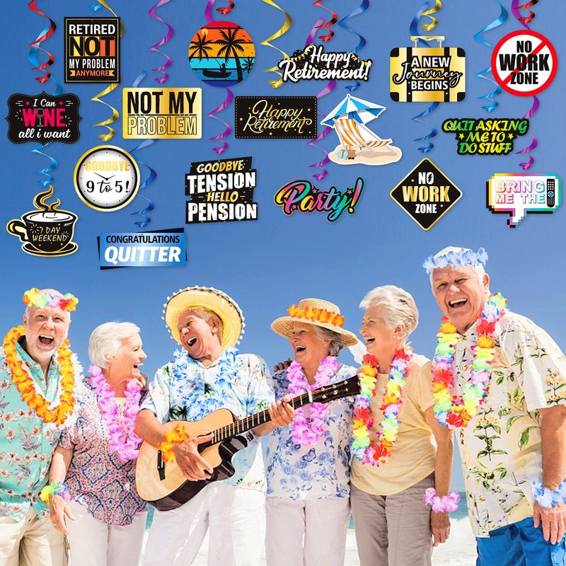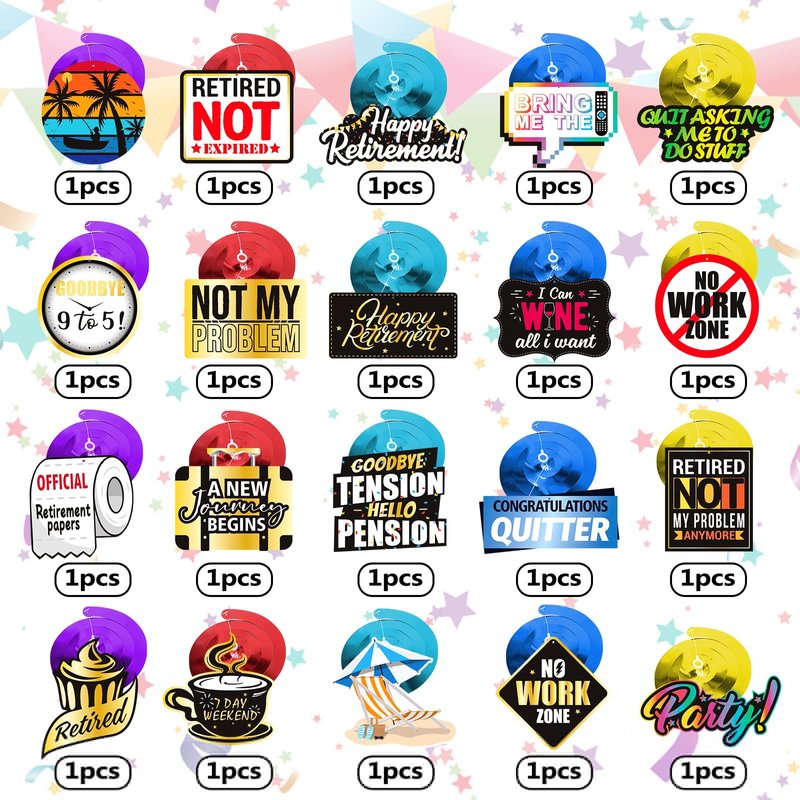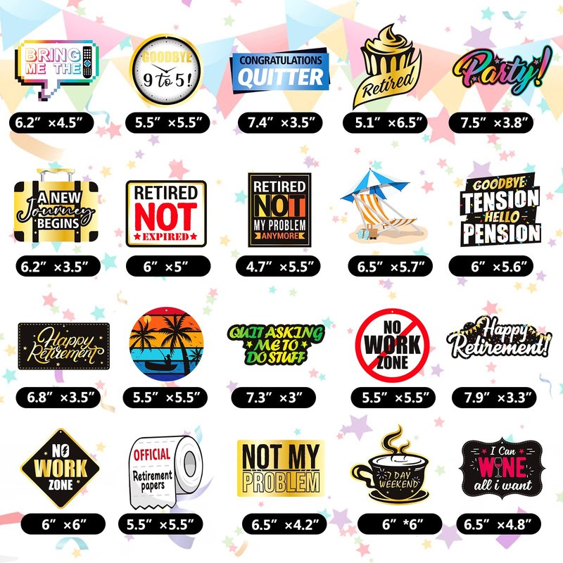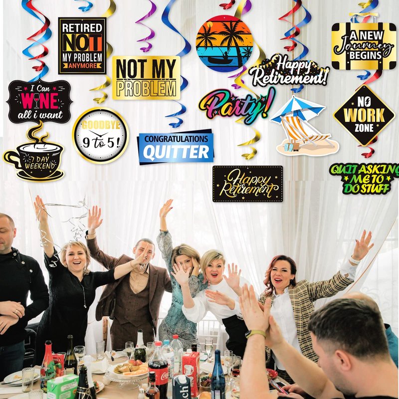 - Retirement Party Decorations: Create a party backdrop in minutes with these cute happy retirement elements decorations kit. Using them to decorate your office party or home will be more attractive and eye catching.