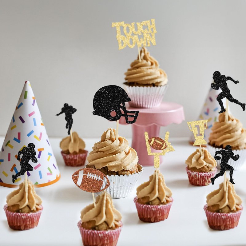 - Usage: They are perfect for rugby ball theme party, American football theme party, super rugby game sports theme party, baby shower theme party, boys girls birthday theme party cupcake decorations, which make the cupcake look tastier and more attractive.
