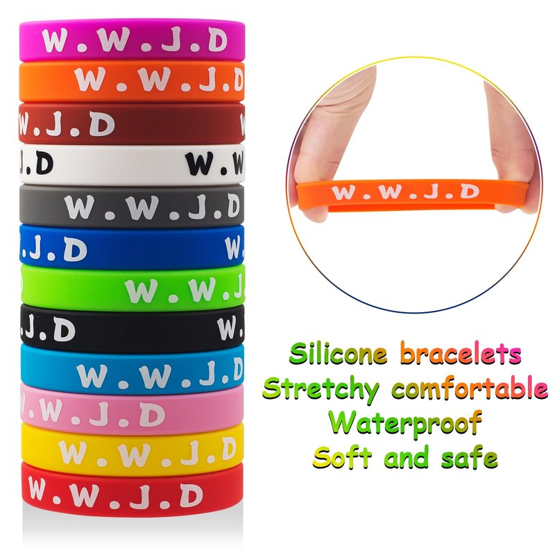 - 【Good christian gifts for kids and fundraisers】The bracelets look great, not only suitable for casual wear, but also very suitable for occasions such as church fundraising activities and youth groups; WWJD" rubber wristband can be used as a gift for family, friends, kids, Christians, etc.You can also add them to the gift bag for birthdays, church events or theme gatherings.