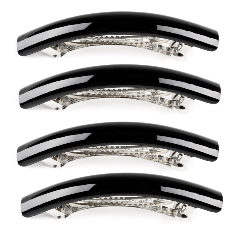 3.7" Long Curved Black French Barrettes for Thick Hair Acrylic Hair Barrettes Chic Ponytail Hair Clips for Styling Long Hair,4pcs (Black)