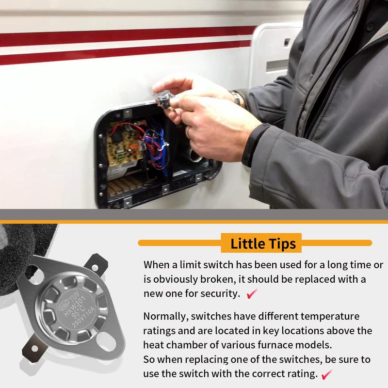 This limit switch fits for Atwood Hydroflame RV Furnaces, compatible with 1522 2 STAGE, 1522 LD 2 STAGE, 2334 2 Stage, 8516-III, 8516-IV, 8520-III, 8520-IV, 8525-III, 8525-IV, 8531-III, 8531-IV, 8535-III, 8535-IV.
