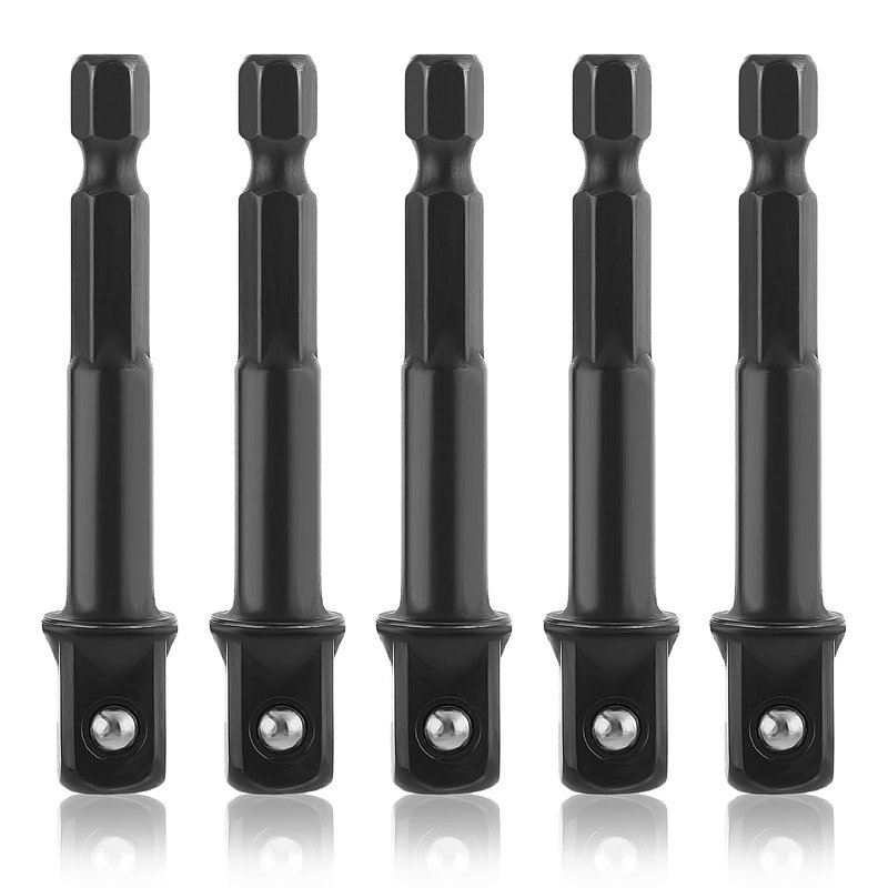 3/8 Impact Socket Adapter, 5Packs 1/4" Inch to 3/8" Drill Socket Adapter Kit for Impact Driver, 3/8" Hex Shank Impact Adapter, Extension Socket Driver Bits for Handle Nut Driver and Drill