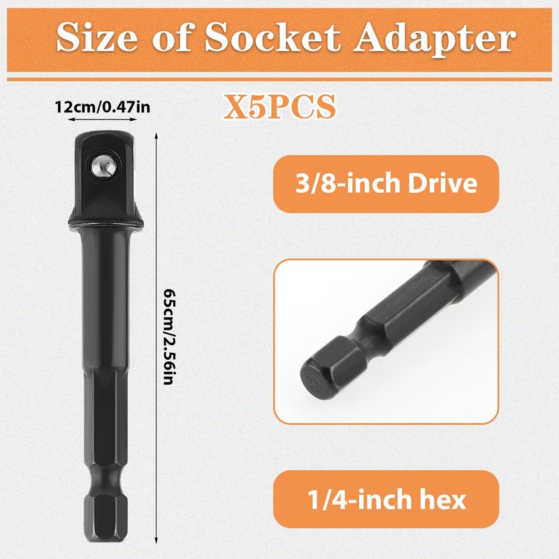 - 【Feature】:The 3/8 impact adapter can convert the original hexagonal polygon size to square head size, which can be used to install sockets; it is a good conversion accessory, which improves work efficiency or even more convenient.