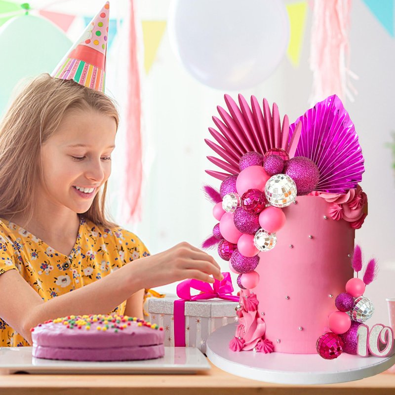 - APPLICATIONS - The balls cake decoration suit for birthday cakes. With popular balls and palm leaf cake topper combination, the unique design is ideal for your cake. These balls cake toppers can be decorated on various cakes and desserts, suitable for baby shower, wedding and birthday party.