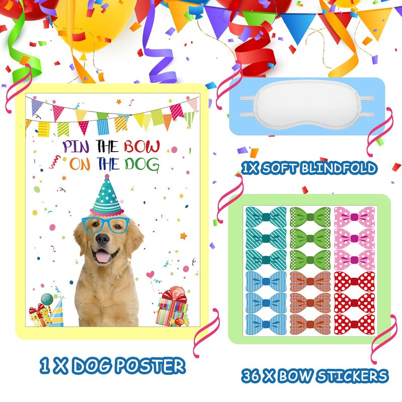 - What's Included: this puppy birthday party games include 1 piece of dog poster, 36 pieces of stickers and 1 piece of white blindfold, a thoughtful combination for you to enjoy game time with classmates or family