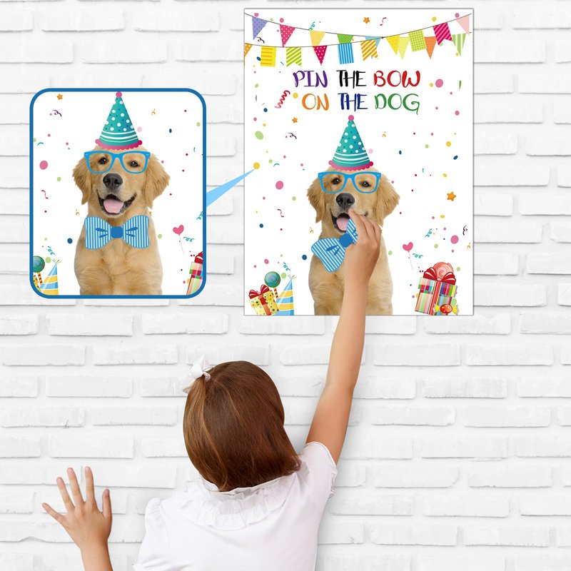 - Various Occasions: this pin the bow on the puppy game is presented in colorful colors, which can immediately grab people's attention, widely applied in home decoration, room decoration, birthday party supplies, dog themed parties, etc., to create a happy atmosphere