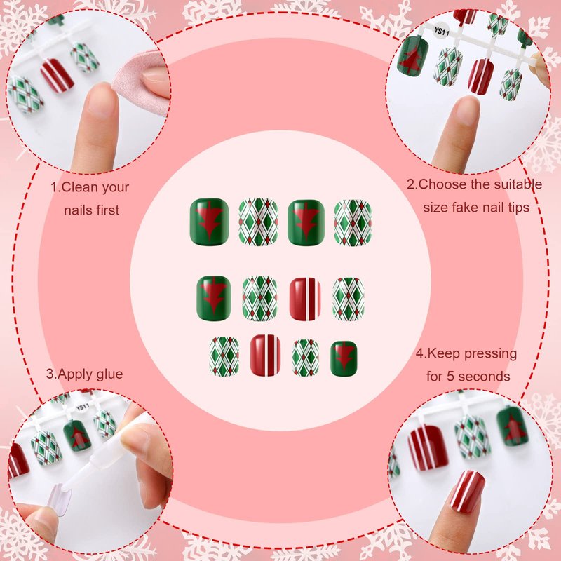 - Wide Applications: Christmas square nails are practical and delicate, suitable for both skilled manicurist in nail salons, nail design lovers and nail design learners, DIY nail decoration at home and so on; Wearing these acrylic nails to display your personal charms on occasions like wedding, prom, dating, Christmas, and other festivals