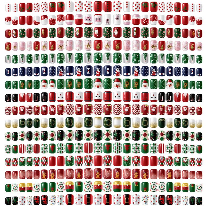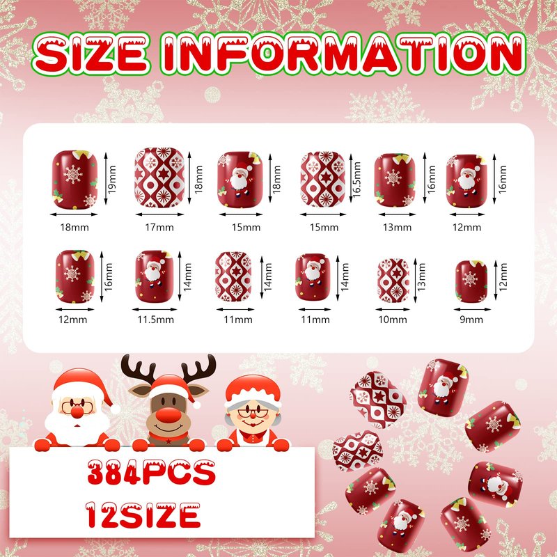 - Large Quantity: there are 16 packs of Christmas short fake nails in Christmas theme, 384 pieces in total; Please note that glue or gel not included; The sufficient quantity and rich designs can satisfy your various daily needs and replacement, and you can also share the enough amount with your partners and family members