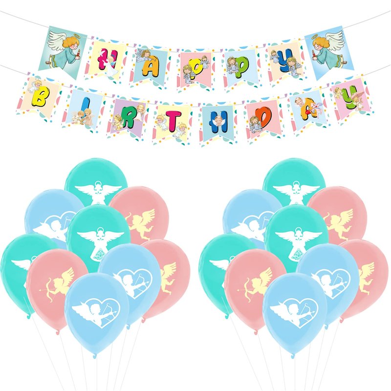 - ✨Angel Birthday Decorations Kit: Package included 1 x birthday banner, 1 x big happy birthday cake toppers, 18 x latex balloons, 12 x cupcake toppers, 6 x hanging swirl decorations having a cool party for kids.