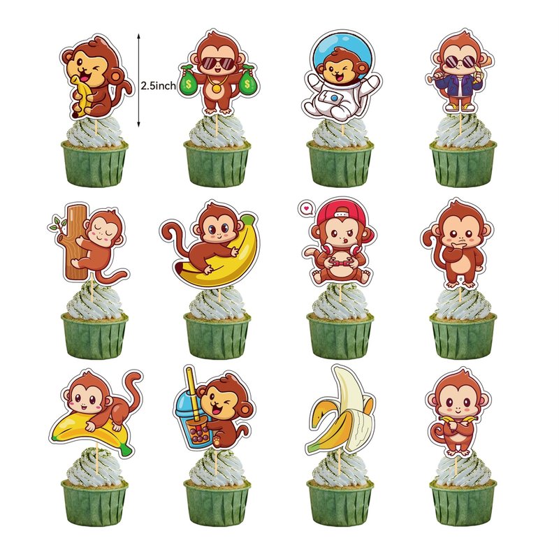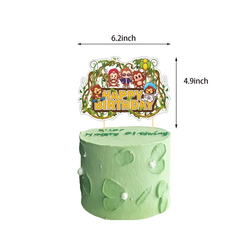 - 🙊🍌Monkey Birthday Decorations Kit: Package included 1 x birthday banner, 1 x big happy birthday cake toppers, 18 x latex balloons, 12 x cupcake toppers, 6 x spiral pendant, having a cool party for kids.