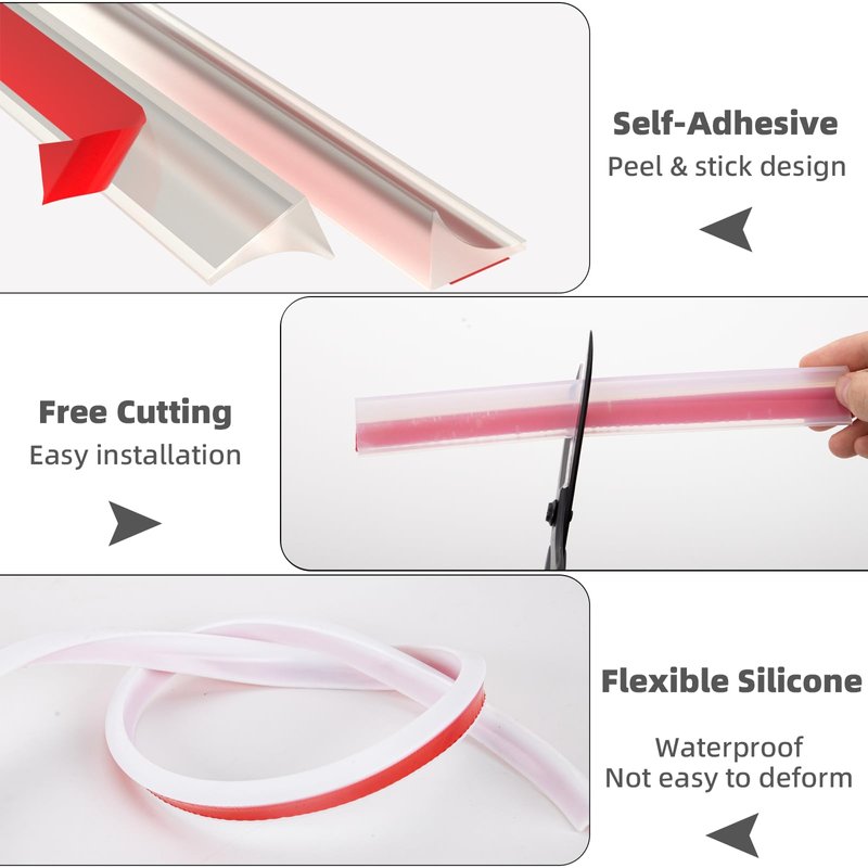 - 💧【Multi-Purpose Use】This low shower dam can be used as shower threshold for frameless shower door to prevent water leakage from the bottom of the door(can be used with shower door sweep).And it also can seal the gaps between windowsill,stove,countertop,bathtub and wall,no stains and debris in gaps.