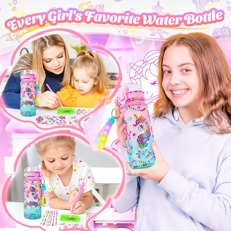- DECORATE YOUR OWN WATER BOTTLE-This 600ml sports water bottle can be customized with the included Unicorn Theme DIY Diamond Gem Arts and Crafts Kit, making it the perfect companion for school, sports, and outdoor fun. It’s a great addition to toys for girls who love personalized items and hydration fun and creative. Children enjoy personalizing their bottles, which promotes healthy drinking habits both at school and during outdoor adventures.