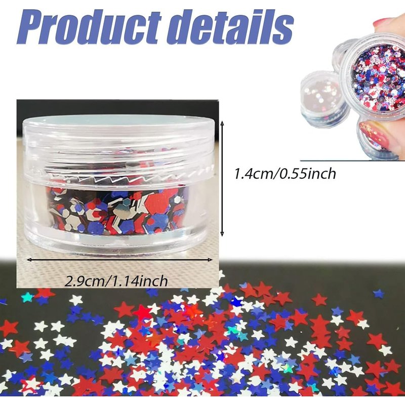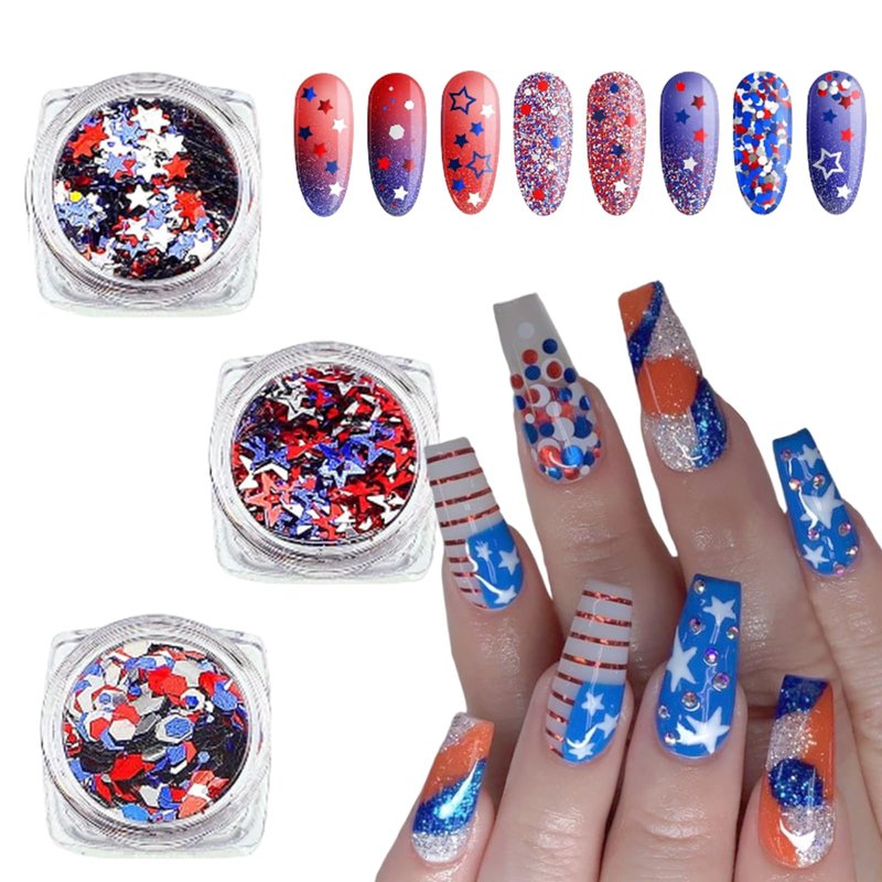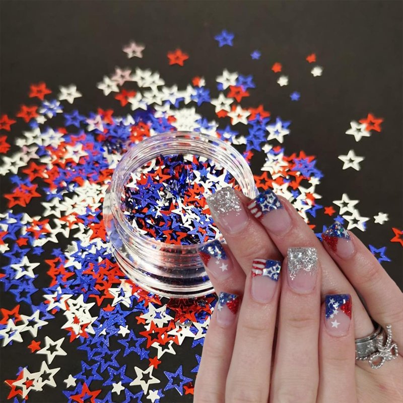 - Package Included: Come with 3boxes Independence Day star nail sequins. Each pattern comes packed in a lattice with good sealing to protect it from spilling out. You can choose your favorite color or combine them to meet all your nail art needs.