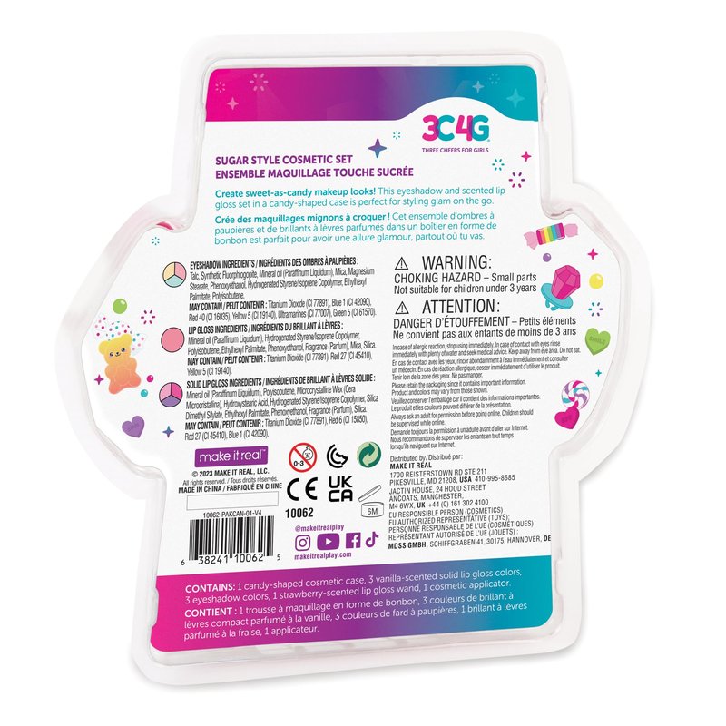 3C4G: Sugar Style Cosmetic Set - 9pcs, 4 Colors of Scented Lip Gloss & Eyeshadow Held in a Candy Shaped Container, Makeup Girls & Kids Ages 8+
