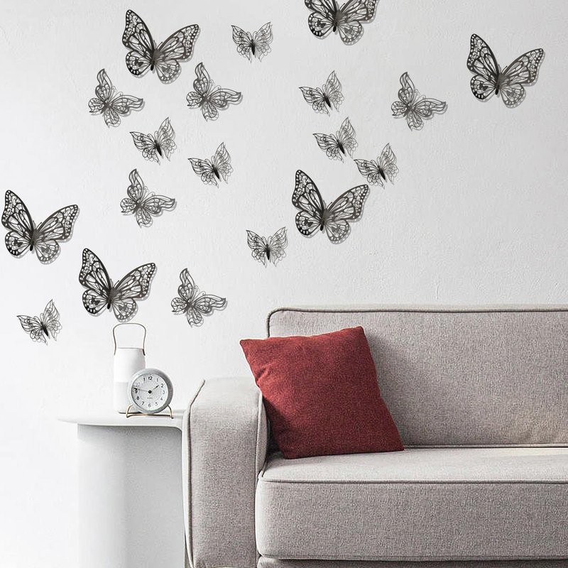 - 【3D Hollow Metallic Wall Stickers】This set of butterfly ornaments is designed with hollow and 3D effects, graceful lines and vivid molding, and delicately detailed outlines.