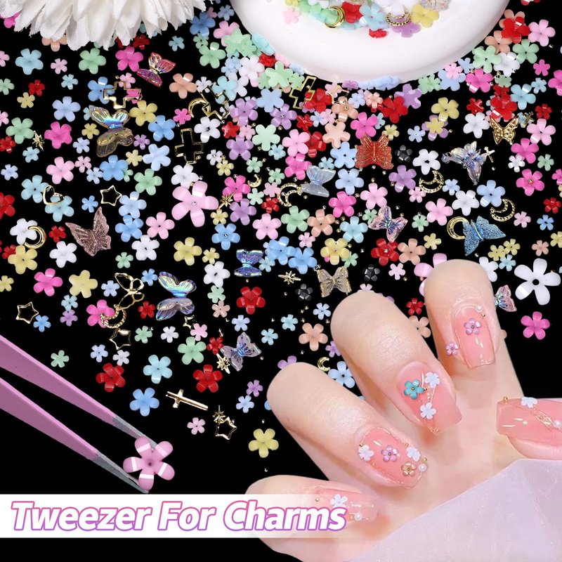 - What You Will Receive: You will get a box of color assorted multi tiny spring blossom flower 3D nail art charms and acrylic butterfly nail charms and mixed gold nails. Enough quantity meet your needs