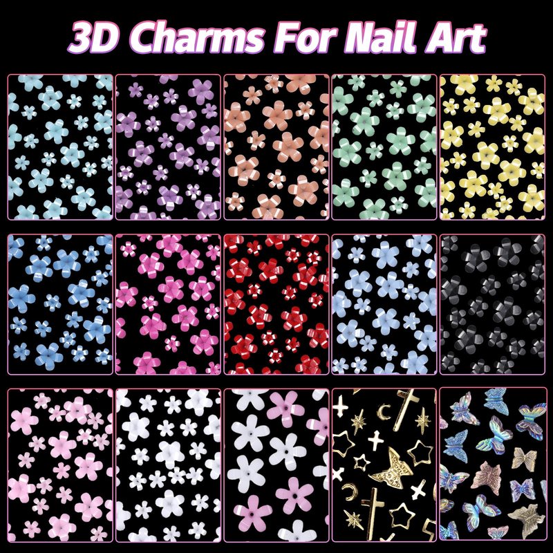 - Premium Quality: Made from high-quality resin and acrylic, our assorted flowers nail charms and butterfly nail charms are long-lasting. 3D effect adds a touch of glamour to your nail art