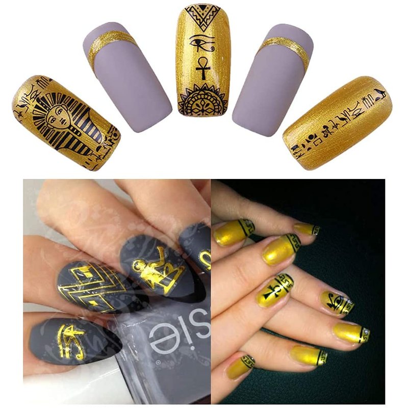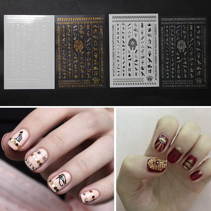 3D Egyptian Pharaoh Lotus Nail Stickers 4Pcs for Acrylic Nails Art Self Adhesive Celestial Trippy Luxury Designs Gold Nail Jewels Evil Eye Metallic Charm Zodiac Glitter Chakra Old English Anime Decals
