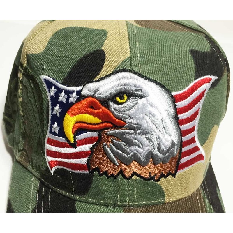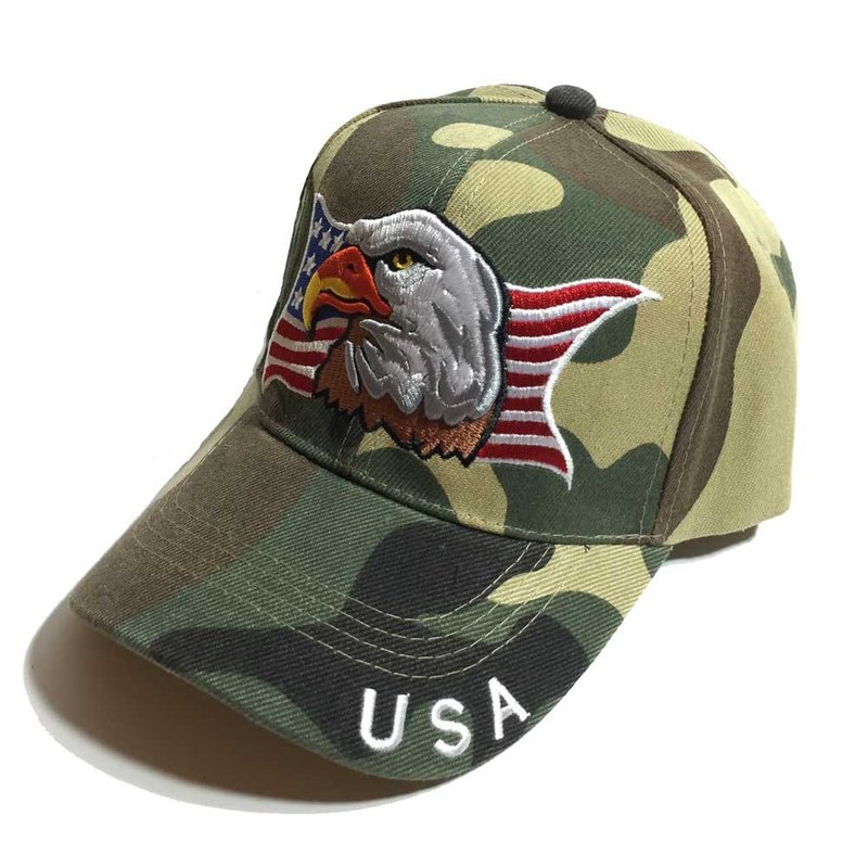 3D Emboridered Patriotic USA American Flag Flying Bird Design Baseball Cap Hat Visor (Camo)
