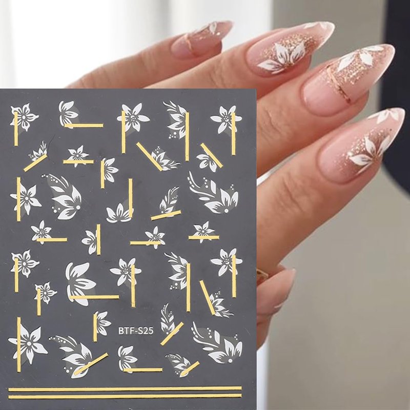 - 【Golden Nail Stripes】White flowers and golden lines combination will give you an elegant nail design. Suitable for nail design to wear at work,to school and also nail design for holiday and vacation.