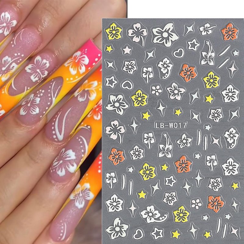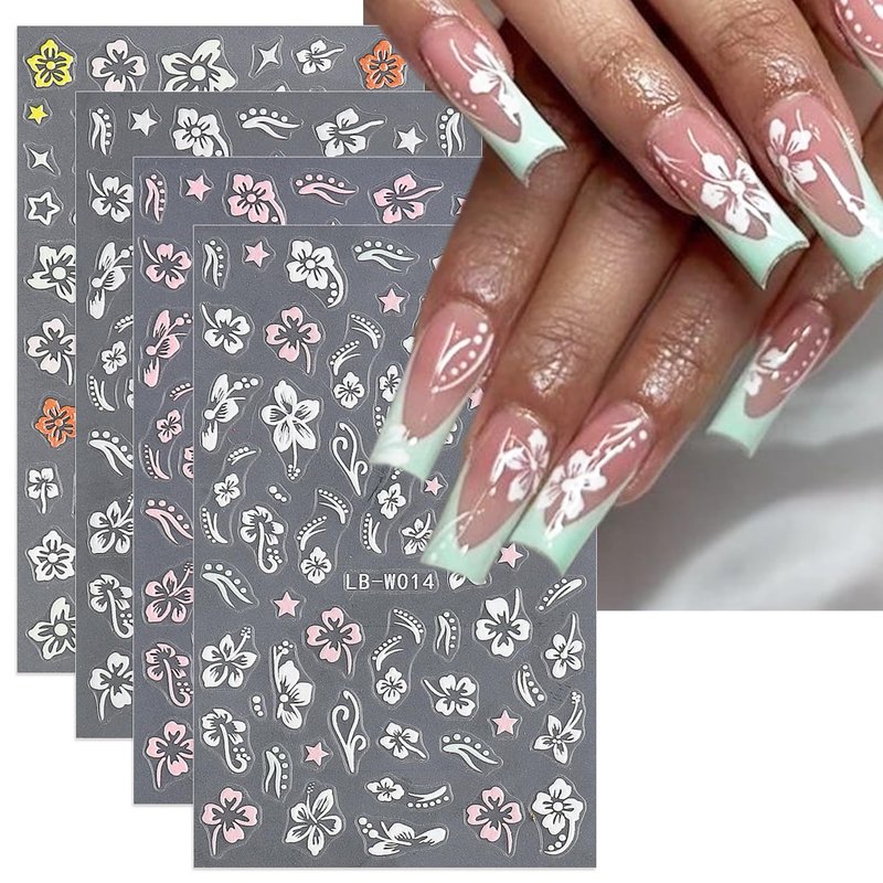 - -【Easy to Use】Floral nail decals for nail art are self-adhesive and requires no glue, just remove sticker then stick this 3d nail decals on your nail. Apply top coat gel to seal to make the stickers last longer.