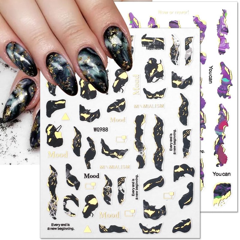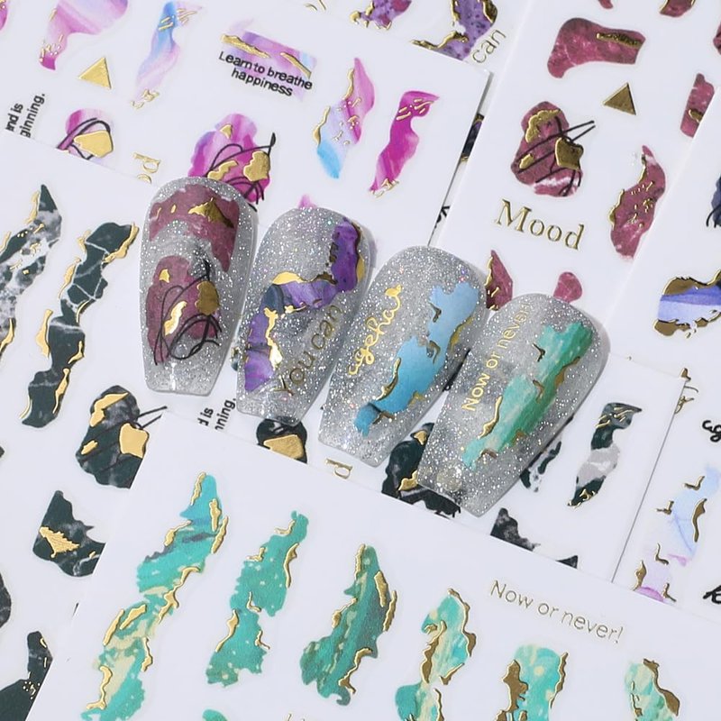- ❤【3D Gold Foil Nail Art Decals】Hot stamping marble nail art stickers, the gold foil matches the colorful marble patterns, unique and personalized, bring an unprecedented aesthetic experience, can make your nails become more beautiful and attractive, instantly enhance your nail charms.