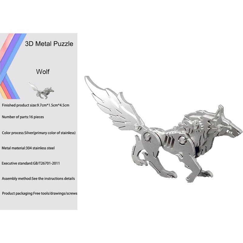 3D Metal Model Kits, Mechanical Wolf 3D Metal Puzzle,Steel Animal Series DIY Brain Teasers Simple 3D Puzzles Home Decor Art Craft Gifts Toys for Adult
