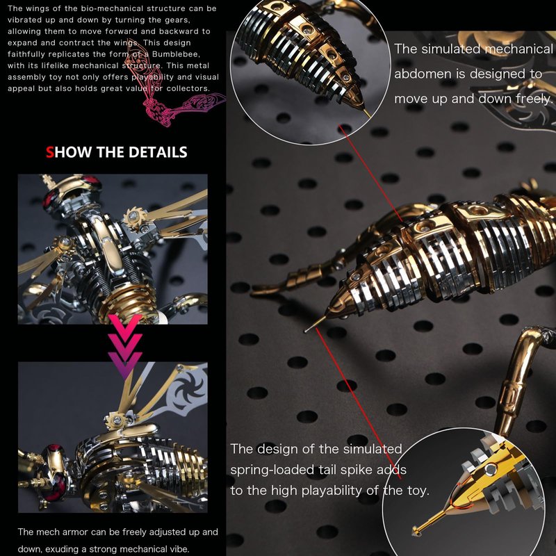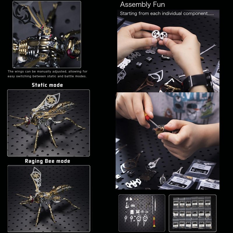 3D Metal Puzzle Wasp Model Kits: Mechanical Metal Puzzles for Adults Challenging DIY Assembly with Tools Building Block as Birthday Gift