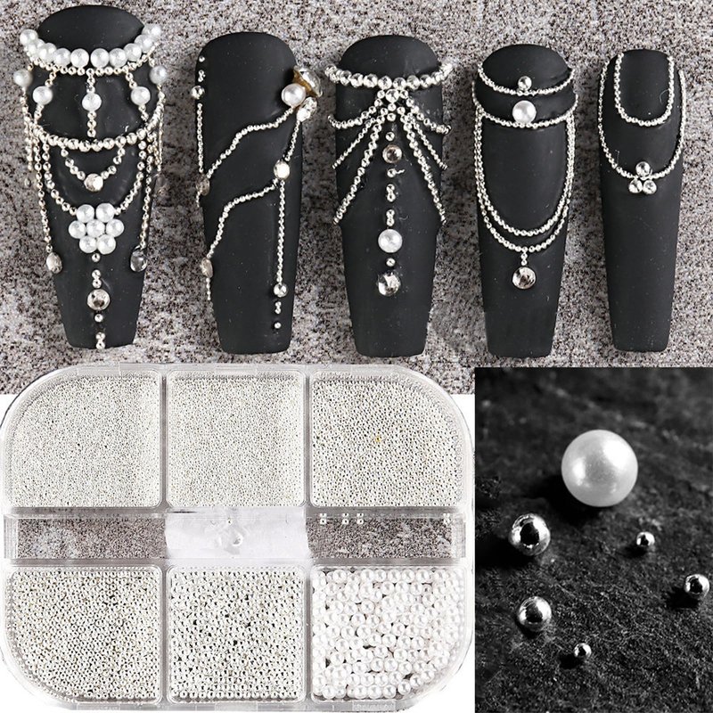 3D Nail Art Steel Pearls Mini Caviar Beads Silver Nail Charm 0.4mm-1.2mm Mini Caviar Metal Steel Beads for Women DIY Nail Art Accessories