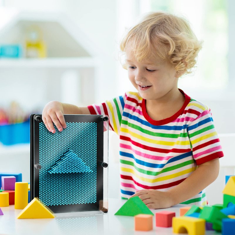 - Pin Toy Features: Unique plastic pin board toy is different from metal pin impression toy; Our hand pin toy is lighter than other impression toy; Anytime you want to make a new print you place it horizontally and the pins toy is back the way it was