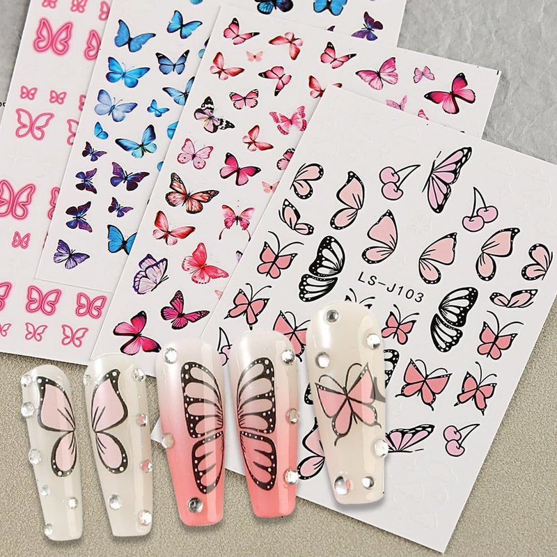- 🦋【Colorful Butterfly Stickers for Nails】The nail set includes 4 sheets of colorful butterfly nail art stickers, and these beautiful watercolor butterfly nail stickers can add more colors to your nails, bringing more possibilities to your nail design and making them no longer monotonous.