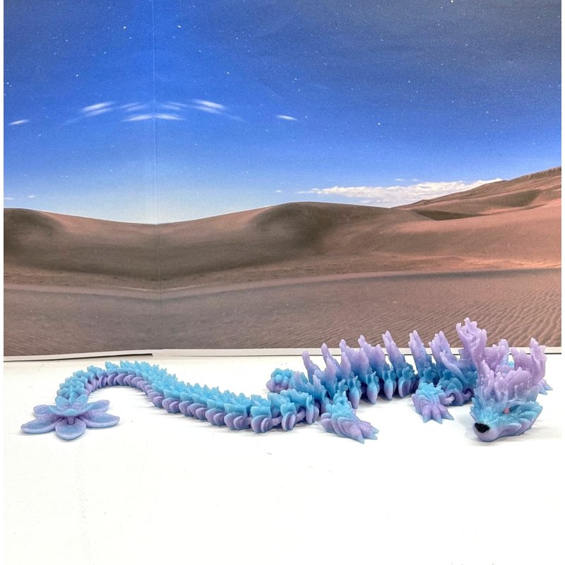 3D Printed enchanting Articulated Cherry Blossom Dragon - a mystical creature that brings a touch of fantasy to your world. Unveil the mystery of this Powder Blue Cherry Blossom Dragon ( measures approximately 12" long) a captivating fusion of elegance and fantasy. Encased within a meticulously designed crystal egg, this tiny dragon reveals itself with a symphony of colors - a testament to its magical heritage. ------- Choking Hazard Small Components Advisory NOT for Children under 3 years old: ------- Please note that this product may contain small components and might not be suitable for very young children. Given the characteristics of 3D printing, there is a potential for small components to detach if handled aggressively or dropped. Therefore, we advise against allowing younger children to interact with the dragon. Please consider that 3D printed objects might include minor imperfections such as layer lines. These are a natural and inherent aspect of the printing process. We strive to produce the highest quality items, and these imperfections contribute to the unique character of each piece. Recall the unique creation of each dragon, crafted exclusively for you. The color selections available are depicted in the provided photos. Please be aware that variations in color may occur due to discrepancies in filament production and the characteristics of the monitor or screen you are utilizing to view the listing. Additionally, the arrangement of prints using multi-colored filament rolls can influence color distribution. ------- Licensing Information: ------- Authorized Design: NOHo3D holds the official authorization for the production of this exquisite design created by CinderWing3D.