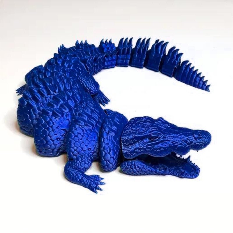 3D Printed Toys Crocodile Toy/Dragon Ornament, Relief Anxiety Crocodile Action Figures, 3D Printer Rotatable and Poseable Articulated Crocodile/ Dragon Toys for Adults (13in-Blue)
